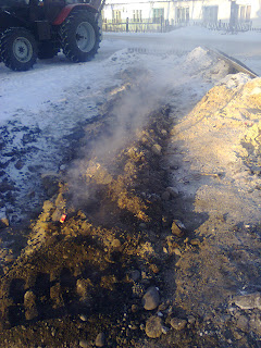 Расход материала примерный на 30 метров траншеи шириной 1 метр, использовано около 3м3 угля, 2 м2 дров.